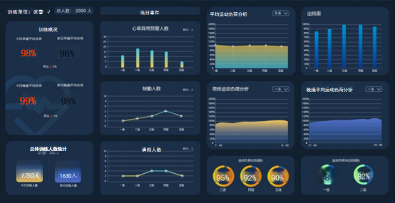 运动负荷监测子系统利用国际领先的新一代物联网技术、可穿戴设备和大数据技术,对官兵的体育锻炼运动中产生的信息进行实时的采集和连续监测,包括各项量化的运动数据,参训人员配发个人运动手环,可将运动心率、运动人员位置等数据上传至运动管理系统。