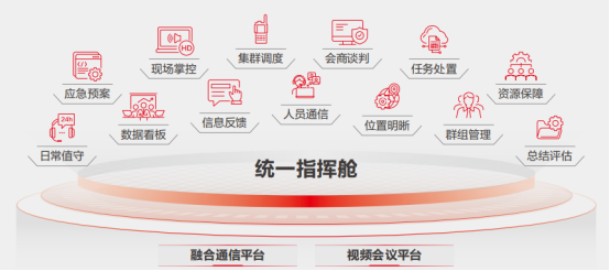 支持融合通信,包括固定电话、对讲机、视频设备、卫星通信等多种通讯工具,实现多端协同会商和跨界调度。