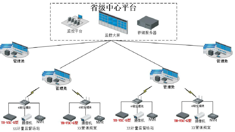 钻井现场及试油试气站分别安装有工业电视视频监控系统,用于本地视频信号的采集、存储,同时将本地视频信号传输到调控中心。