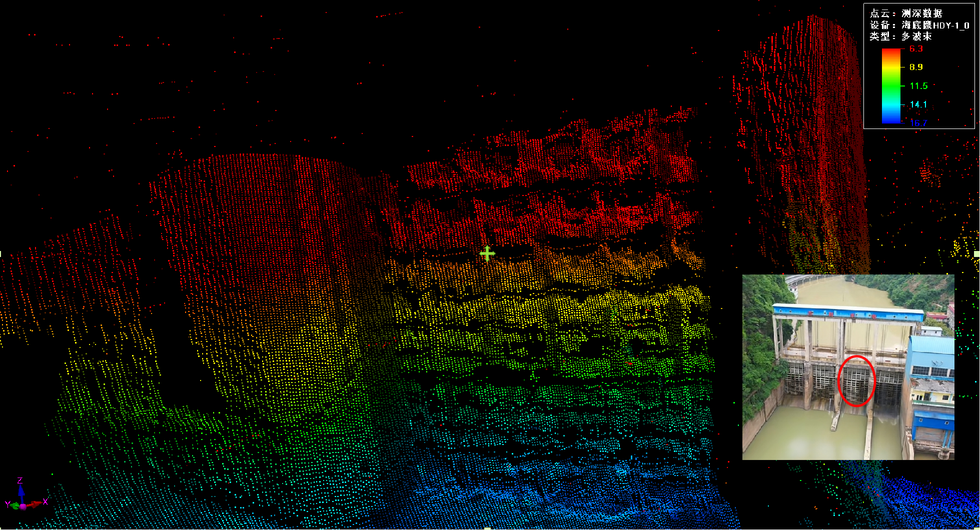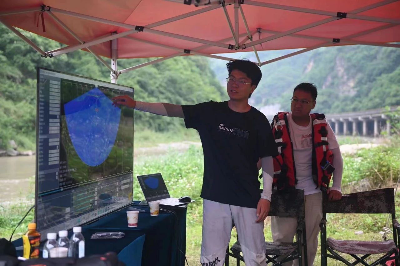 活动当天,因大关县前几日降雨量大,大关河水流湍急,河水浑浊度极高,专业技术人员携带高清多波束三维图像声呐HDY-BD400D设备,在现场进行了精彩的演示。随着搭载BD400D的救援艇在河道驶过,一幅清晰的水下地形图实时在屏幕上显现。在场的省消防救援总队领导和一线队员纷纷力赞三维声呐的精准和便捷。