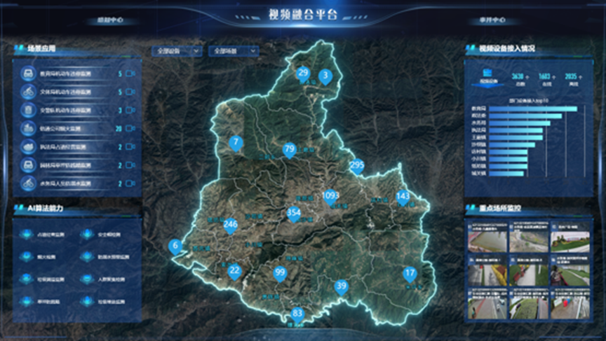 (3)建设成效:陇南市一网统管共汇聚各个县区视频资源4000+多路,覆盖成县等7县一区,通过AI算法赋能,搭建机动车违停、占道经营、施工场所安全帽检测、烟火检测、人员防溺水、区域入侵、垃圾东满溢预警、乱堆乱放、人员聚集等城市治理场景,每月主动分析上报处理事件1000多件,有效解决了当前城市治理人力耗费大、发现问题不及时的问题。