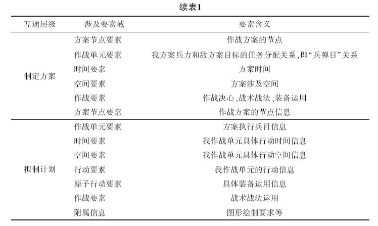 在图4中,分五个层级互通的作战方案要素具体解释见表1。