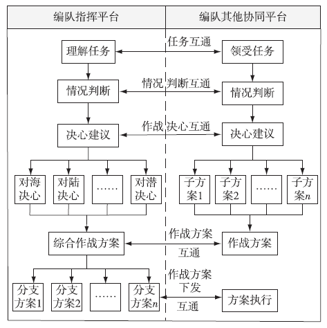 当前,编队指挥机构、上级指挥机构和协同舰指挥机构存在多款方案拟制软件、多种互通协议格式和多个方案互通要素转换软件,导致互通作战方案后产生方案要素丢失、要素不一致、信息不完备等不一致问题,成为制约联合作战效能发挥的关键问题之一。