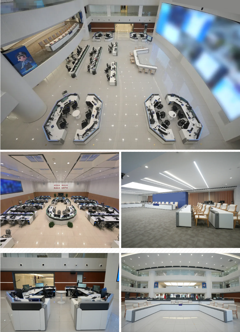照彰按天津市公安局提出的建设需求,该项目全采用‘灵犀系列控制台’整体按照空间使用率进行布局,并预留可扩展空间。智慧云指合成作战平台融合情报研判、指挥调度、图上作战、勤务管理、行动处置、质态管理等六大功能,构建市、区、派出所三级“纵向贯通、横向关联”的联动应用,对所属区域进行全方位、全范围的实时管控,还便于指挥中心实现对各部门联动防控、联合指挥等功能,全面提升警务运行工作效率。