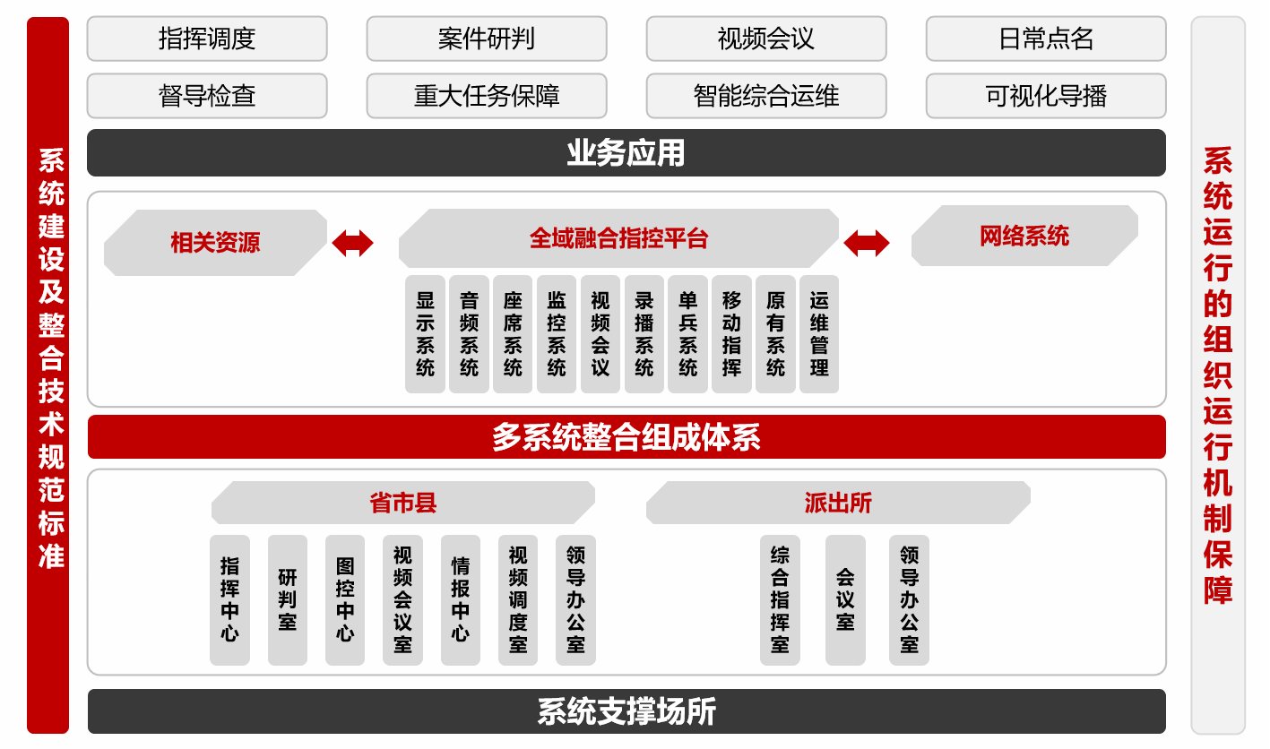 上合组织峰会安保指挥中心要求具备调度指挥和调用各种音频图像资源的功能,形成既有指挥调度、决策研判、通信勤务保障和综合信息报送的工作平台,又有业务警种和应用系统支撑等处置重要警情的技术保障。