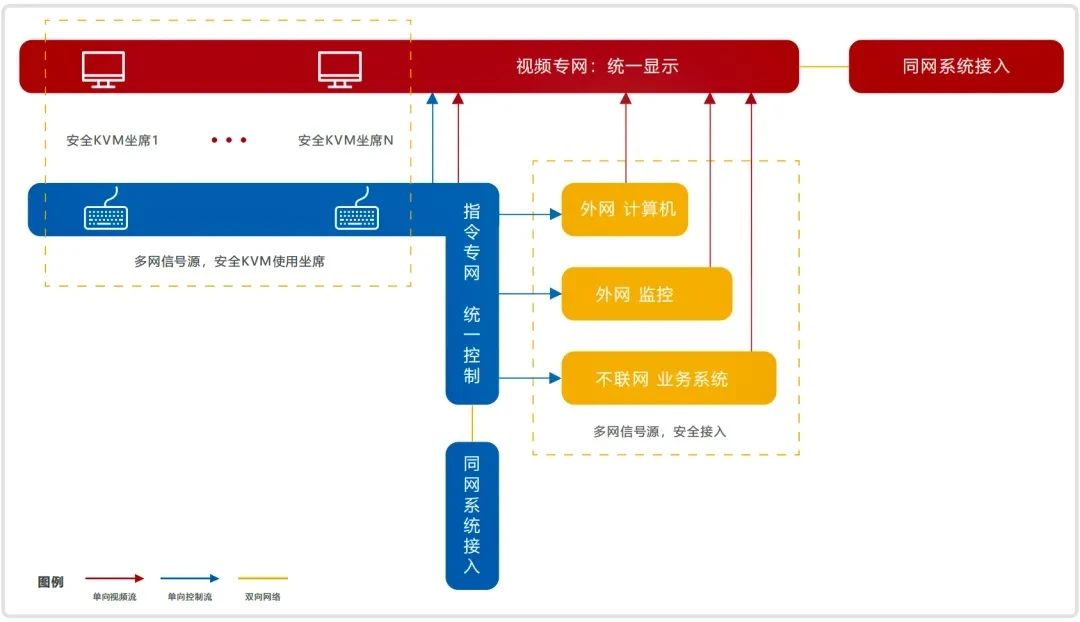 东微安全KVM系统采用视频传输与键鼠指令传输双网架构,确保原有多密级网络业务系统之间的物理隔离状态不被破坏,完全符合相关的保密要求。这一创新性的架构设计,既保证了信息的安全性,又提高了系统的灵活性和可扩展性。