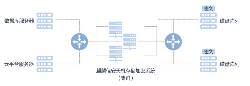 系统可为数据库服务器提供磁盘扇区级数据加密保护服务,通过交换机使用ISCSI或FC SAN存储协议将加密卷映射给数据库服务器,数据库服务使用该加密卷存储业务数据。