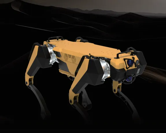 多功能四足机器人是一种仿生腿足式机器人,设计用来模仿动物(如狗、猫、马等)四肢结构和行走方式。它们通过高度复杂的机械结构和精密的控制算法,同时配备多类型的传感器、驱动器、控制系统等,使其具备极强的环境适应能力,能够在多种复杂地形中稳定行走和执行任务。