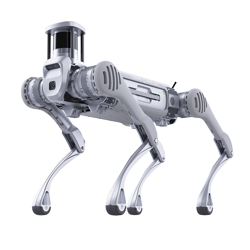 该四足机器人的动力单元采用高密度模组化电机,机身与腿部采用一体化设计,高效的运动控制器使其可以适应于多种复杂的地形和环境。拥有自主训练智能体网络,助力仿生人工智能前沿领域探索可实现上层控制器/端到端两种智能运动控制模式,提升四足机器人自主环境适应性。