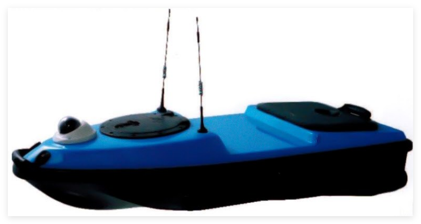 船体尺寸:1.6m(长)x 0.6m(宽);体自重:32kg;最高航速:2m/s;续航时间:3h@1.5m/s,2h@2m/s;通信距离:遥控1km,基站2km;抗风浪等级:4级风,0.5米浪;最小工作水深:0.25m;自动避障:10m;推进方式:螺旋桨。