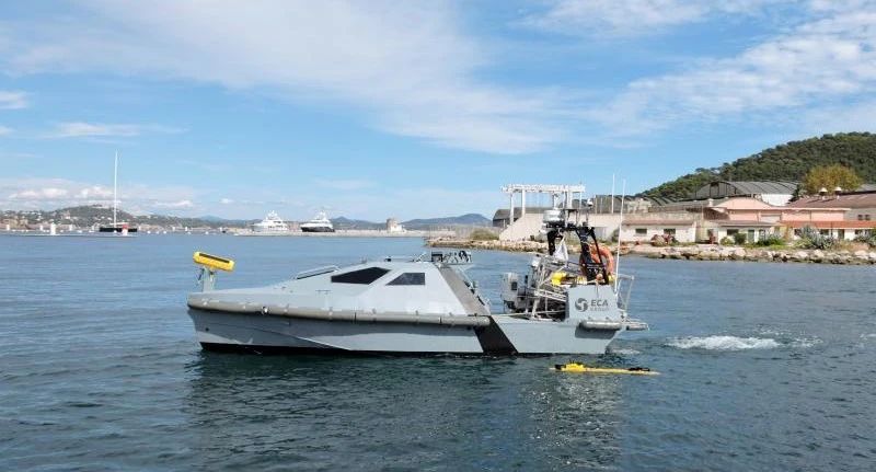 图6 ECA公司“Inspector Mk”系列无人船搭载相干声呐条带测深系统、侧扫声呐和水下机器人用于扫猎雷