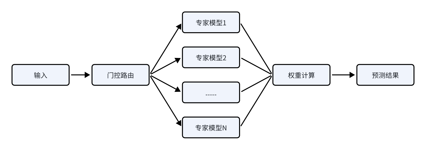 混合专家模型(Mixture of Experts,简称MoE),其通过将模型分解为多个不同的专家模块从而将单一任务空间划分为多个子任务空间,从而让模型精准地处理输入,提升模型性能。