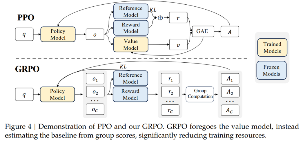 在DeepSeek-R1的强化学习阶段,GRPO(Group Relative Policy Optimization)算法发挥了巨大的作用。GRPO算法相比传统PPO强化学习效率大幅提升,尤其适合训练参数量巨大的LLM和军事对抗博弈场景。