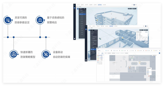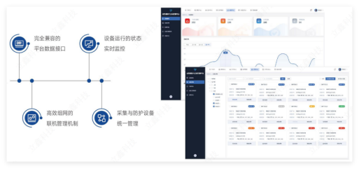 采用完全兼容的平台数据接口,进行高效组网和联机管理。可通过可视化管理界面手动设定防御设备启动与关闭条件等参数,查看设备的实时状态,对采集与防护设备进行统一管理。