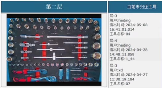 AI视觉识别智能工具柜针对取用记录后台进行自动盘点和统计,当出现未归情况时系统将进行自动提醒,以确保工具的完整性及防止工具遗落在需维修装备核心部位造成安全风险。