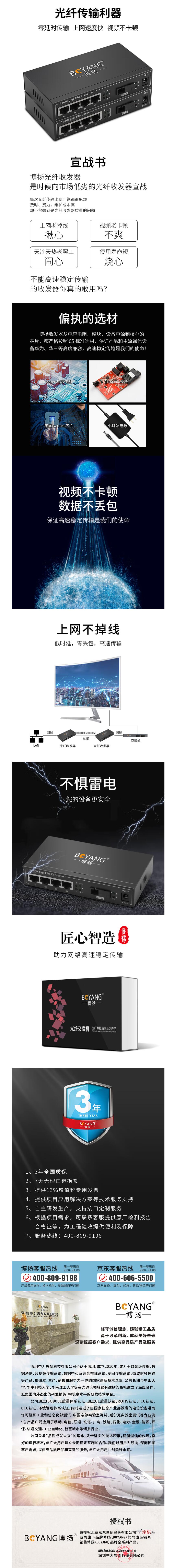 博扬BY-VG1041A/B-20KM千兆1光4电单模单纤光纤收发器 隔离光电转换器 SC接口1对
