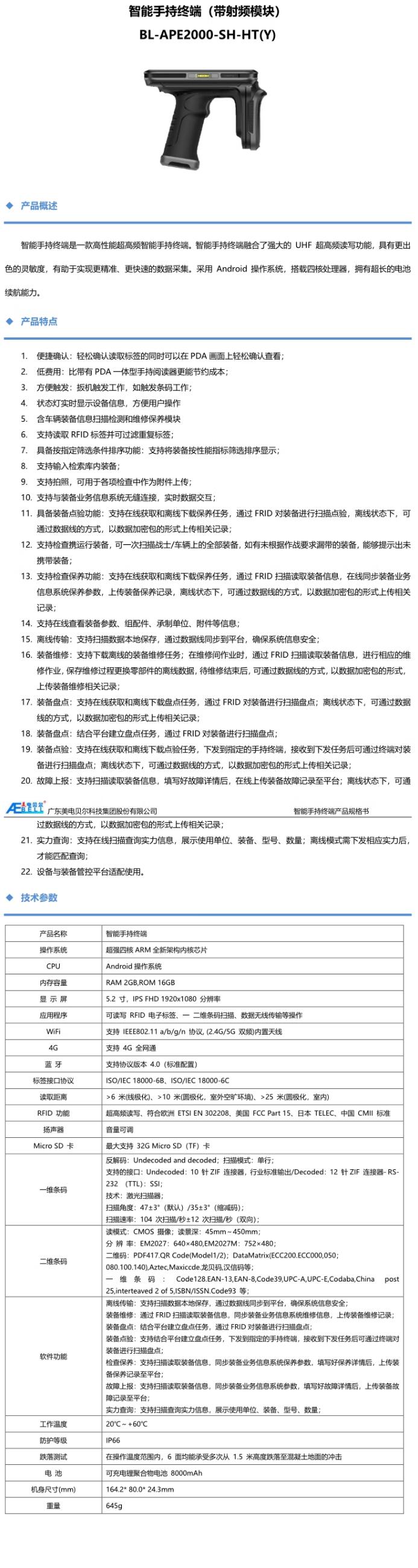 智能手持终端(带射频模块)BL-APE2000-SH-HT(Y)