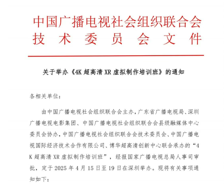关于举办《4K 超高清 XR 虚拟制作培训班》的通知