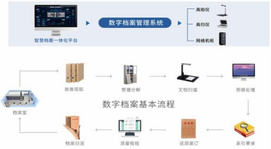 档案数字化:系统连接高拍仪等设备,将扫描后的图片文件经过OCR等技术智能加工,最终导入档案系统中来。