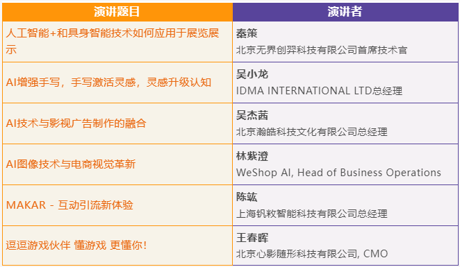 NVIDIA、百度文心大模型及飞桨、巨量引擎 OCEAN ENGINE、上海钒敉、IDMA、心影随形、瀚皓科技、WeShop Al、无界创羿、梦野追逐等AI技术企业将集中展示AI技术在广告、文旅、电商、会议协作、教育、娱乐等行业中的创新应用,发掘合作机遇。