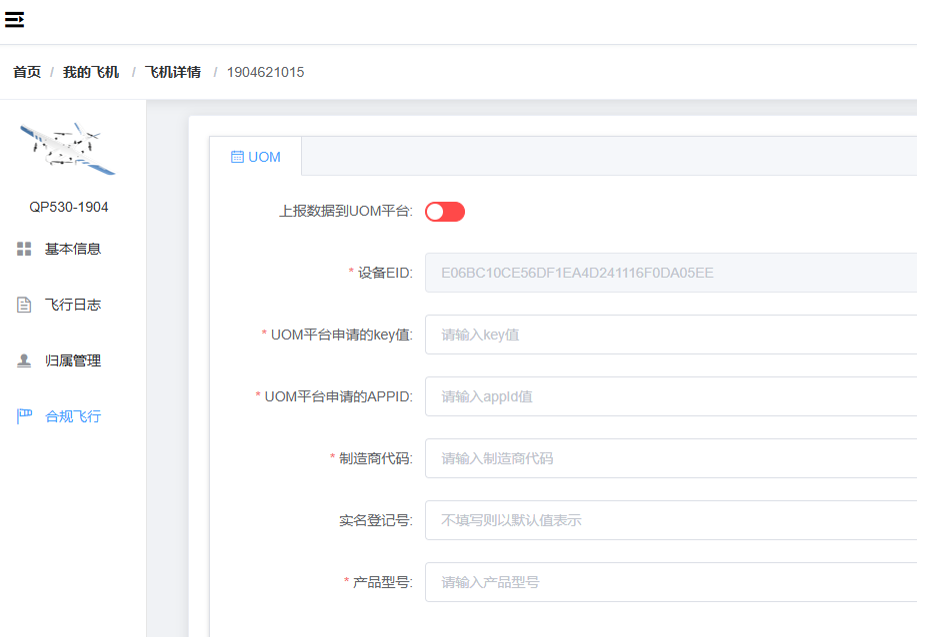 QP530A支持UOM信息通过无人机云管理系统上报,实现合规飞行。用户可在云系统-我的飞机页面启用上报功能,具体操作流程登录www.AheadX.com选择探索更多-文档中心查阅。
