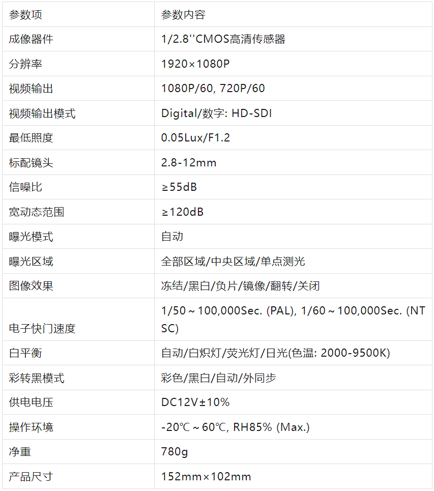 2.8-12mm手动调焦镜头,可根据实景调整焦距。