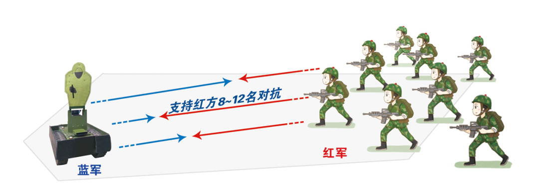 ★ 仿真人型靶车能够完成模拟蓝军的战术机动动作,红军方如临实战,对抗时不仅要打中靶标还要规避机动,保护己方不被击中。