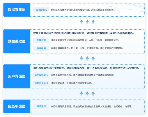 使用深度学习算法进行实时视频监控分析,能够识别特定人物、行为模式及潜在危险。
