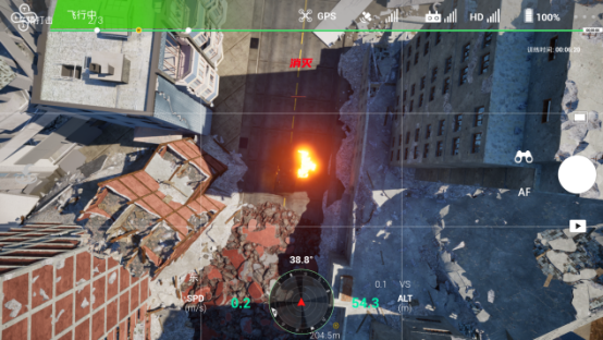FPV飞行眼镜以高分辨率双目显示与超低延迟图传技术,还原真实无人机第一视角飞行体验,结合六自由度头部追踪,实现视角自由切换及“注视锁定”目标功能;通过空间定位与物理环境映射技术,将真实操控动作无缝同步至虚拟战场。