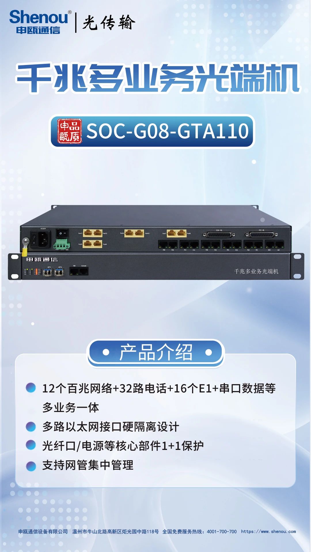 千兆多业务光端机-SOC-G08-GTA110