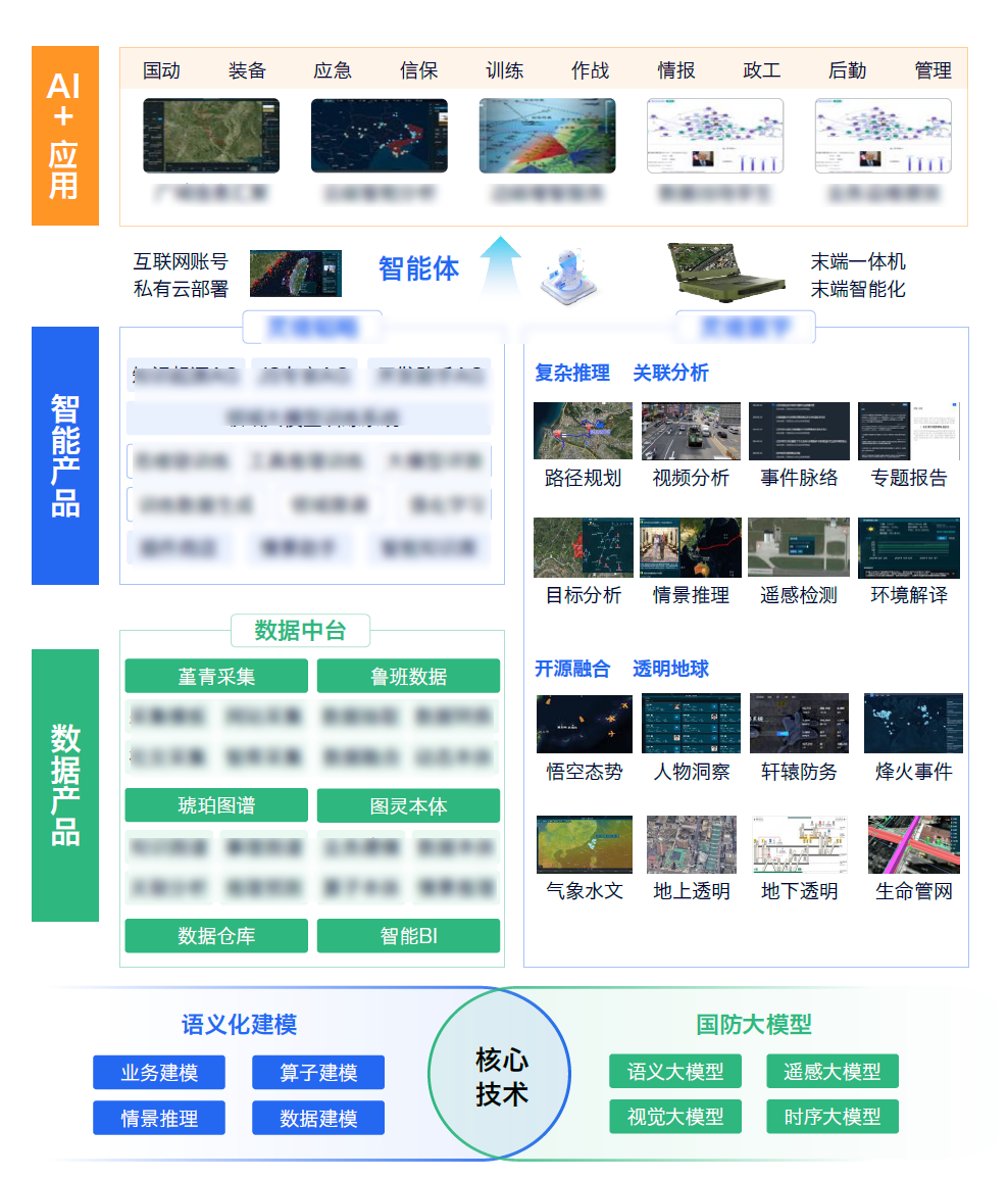 该系统由战略战场监视系统+智能辅助决策系统两个重要产品组成,核心是构建真实世界映射的全域灵境数字空间,在此基础上提供高度智能化的复杂场景自主认知推理能力,为国防单位提供辅助决策支持。同时具备广域数据采集汇聚、多模态跨域数据融合、复杂场景推理、智能化增效等能力,打造大数据智能分析和应用平台,为国防、政府、商业客户提供产品及解决方案等服务。