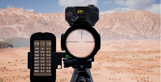 训练系统使用UE5三维引擎开发制作三维仿真战场环境和各种程序可视化功能,将轻武器外弹道算法与虚拟现实实物仿真设备相结合,可在虚拟环境中高度仿真多型号轻武器外弹道射击参数和特性。