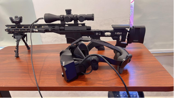 使用先进虚拟现实定位装置,对枪械仿真道具及光学瞄准镜仿真道具进行毫米级空间定位并显示仿真训练内容。