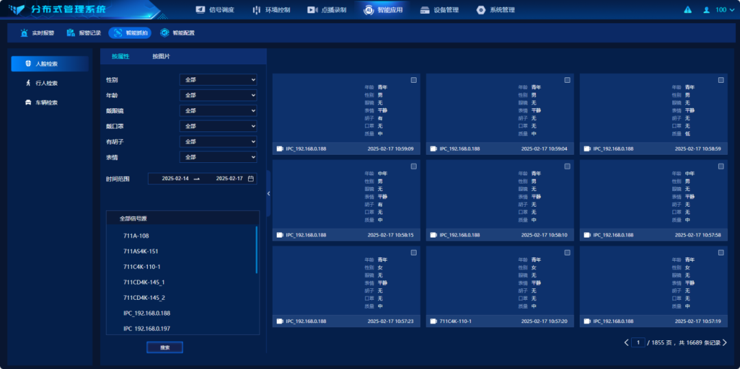 系统通过强化AI场景分析模块,新增布防设置、人脸抓拍、行人抓拍及车辆识别抓拍等智能化工具,可对50余类场景实施全天候实时监测与精准分析。覆盖人体属性检测、区域入侵、人群密度超限、人流跨线、明火监测、车辆违停等典型安防场景。当监测到异常情况时,可通过平台实时弹窗告警、IP广播语音播报、短信通知以及应用端推送等组合方式,快速触发多级响应流程。