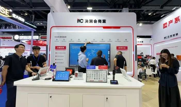展会期间,itc还重点展出了自主研发的小间距LED显示屏、分布式综合管理平台、公安大数据研判平台、专业扩声、融合通信、监控、可视对讲、智慧审讯、庭审录播、虚拟录播、itcHUB智慧会议平板、国产无纸化会议、全数字会议、远程视频会议、语音转写等系列产品线。itc凭借出色的技术实力、卓越的产品应用、便捷化的操作体验以及众多成功案例,吸引了大批参展嘉宾驻足交流和体验。