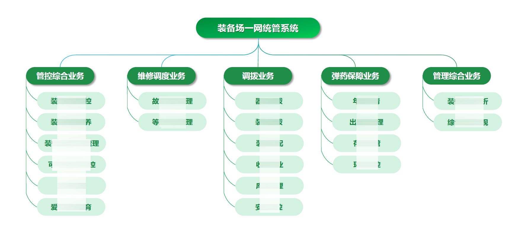 装备场一网统管系统——横向涵盖五个环节,纵向囊括二十子模块。