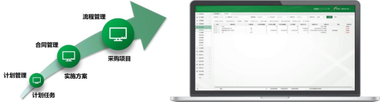 “执行计划”功能模块,针对装备采购的全流程、全周期进行管理,包括:“计划任务”、“计划管理”、“实施方案”、“合同管理”、“采购项目”、“流程管理”、“执行统计”,便于快速了解采购进度。