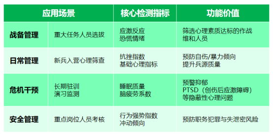 “要加强人文关怀和心理疏导,着力培养官兵血性胆气与健康心理”。当前复杂军事斗争环境下,官兵持续承受高强度战训压力,传统心理筛查依赖主观问卷,存在滞后性、主观性、掩饰性等短板。