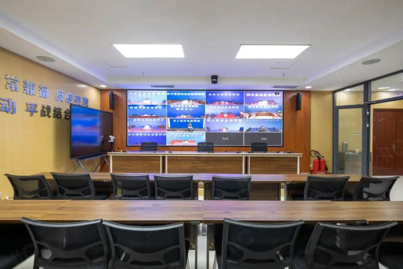 秉承县应急指挥中心全面整合、集约使用的原则,itc保伦股份充分运用大数据、人工智能、物联网等新技术,按照“实况、实时、实用、实战”的要求,为其应急指挥中心精心部署了LED显示屏、数字会议、专业扩声、远程视频会、智能中控等系统,实现融合安防监控平台、视频会商终端、大数据、超高分GIS等多元跨平台信息,打造出“集约整合、平战结合、一主多辅”的智能可视化应急管理平台。