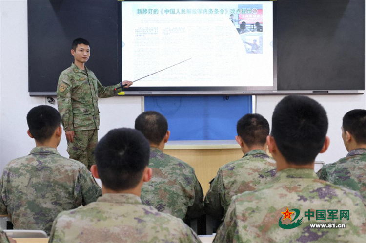 陆军某连理论骨干进行新修订条令的讲解。冯灏钢 摄 来源中国军网