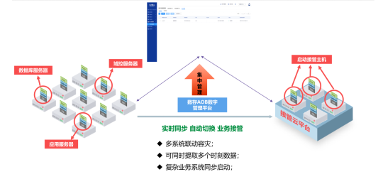 AOB数字资产管理平台是集CDP持续数据保护、数据备份、应急接管、容灾资源管理、容灾体系流程化管理为一体的灾难恢复平台。可实现持续数据保护与快速恢复、数据分层存储、数据归档等功能。同时,支持统一区域管理,实现多地多域部署与统一管理,轻松实现本异地容灾。