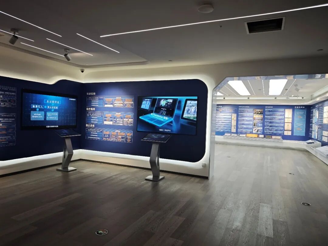 成果展厅的另一类挑战是“能看,但难讲”。项目为每个显示屏对应配置27寸触摸一体机,实现与大屏内容的深度交互:观众或讲解人员在触控端点击资源列表中的某个成果素材,即可完成大屏信号切换,并在触控端进入对应素材的“虚拟大屏界面”,与大屏同步显示。