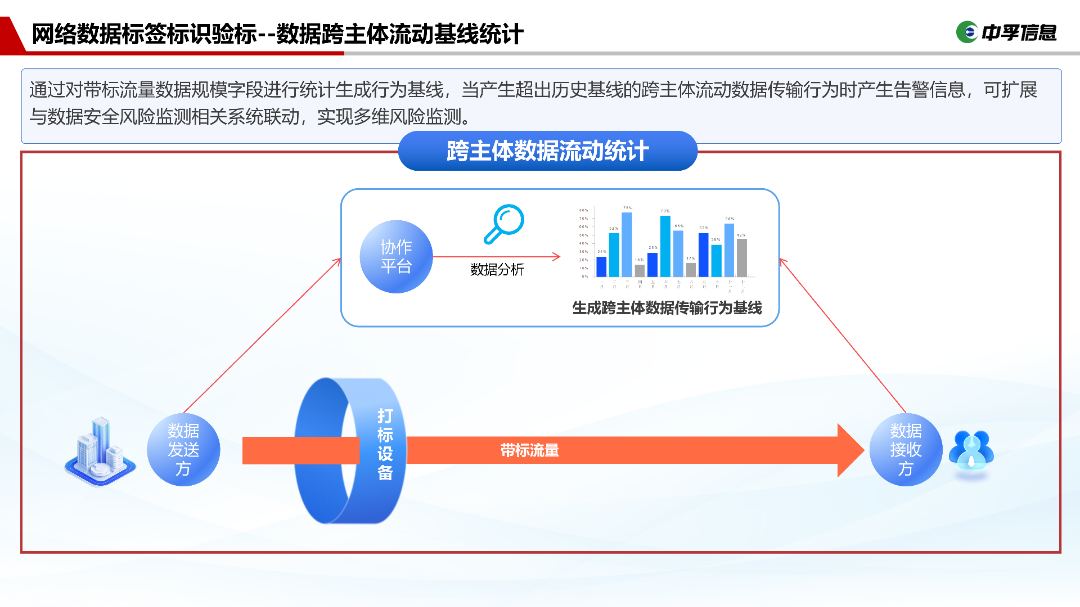 从标签生成、打标传输到验标留存,实现数据全流程溯源,同时满足企业内部数据管理和主管部门跨主体数据安全管控双重需求。