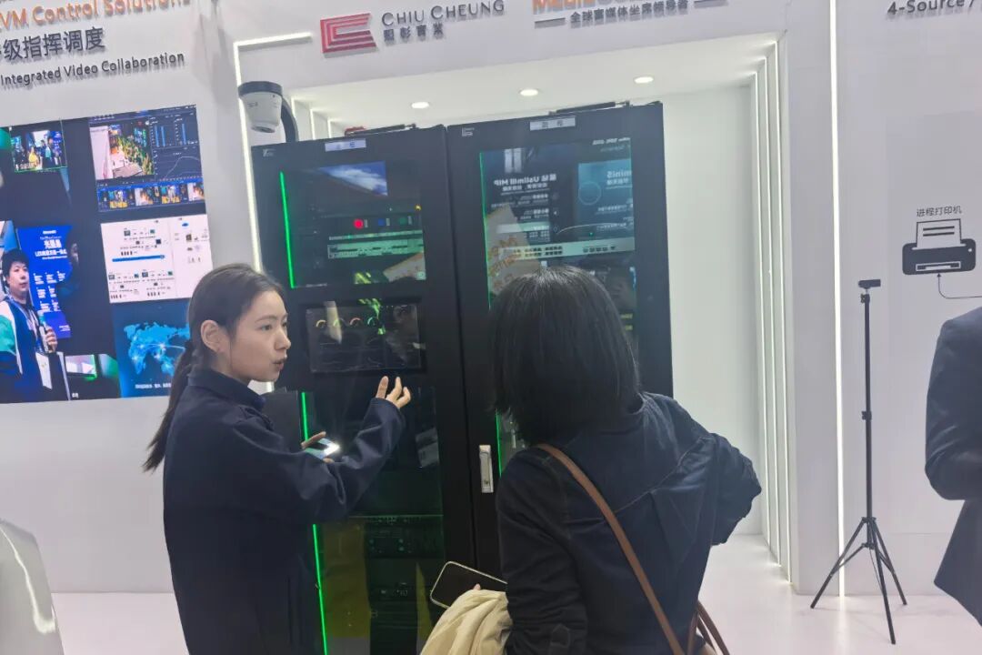 本次展会,照彰精心呈现赛博控制台、智能演讲台、一体化机柜、灵犀控制台四大核心产品系列。兼具未来感与实用性的智能控制台、一体化集成解决方案与人性化交互设计,吸引众多行业集成商与专业观众驻足体验了解,展位现场咨询不断、人气高涨。
