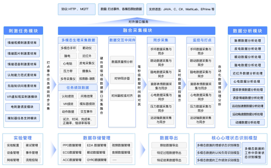 支持接入第三方认知任务、模拟作业任务(如航空资源管理任务MATB)和VR环境。