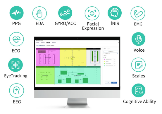 融合分析与指标体系:平台内置强大的数据分析模块,可对采集的各类原始数据进行预处理(如滤波、去伪迹)、特征提取(如ERP、心率变异性、注视热点图),并构建面向情绪状态、认知负荷、心理压力、疲劳水平等特定研究目标的多模态指标体系。