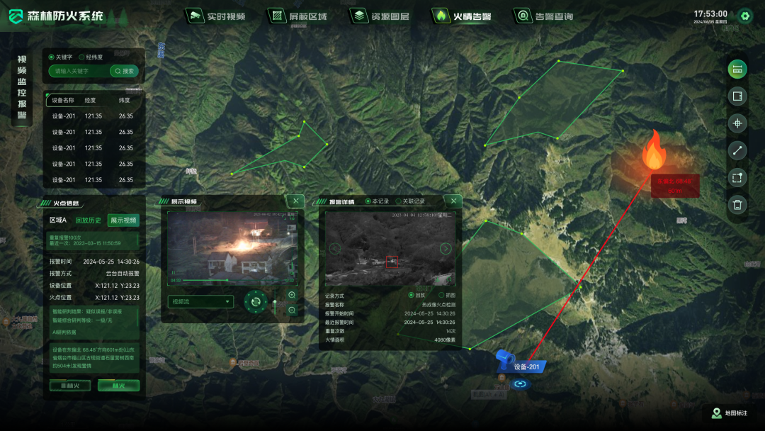 在森林防火领域,Raythink燧石森林防火热成像解决方案,依托高热灵敏度热像仪与AI智能算法,最少仅需1.5个像素即可灵敏捕捉火点。配套覆盖火情告警、研判、处置等多项功能于一体的全业务闭环处置云平台,全面提升森林防火工作智能化水平。