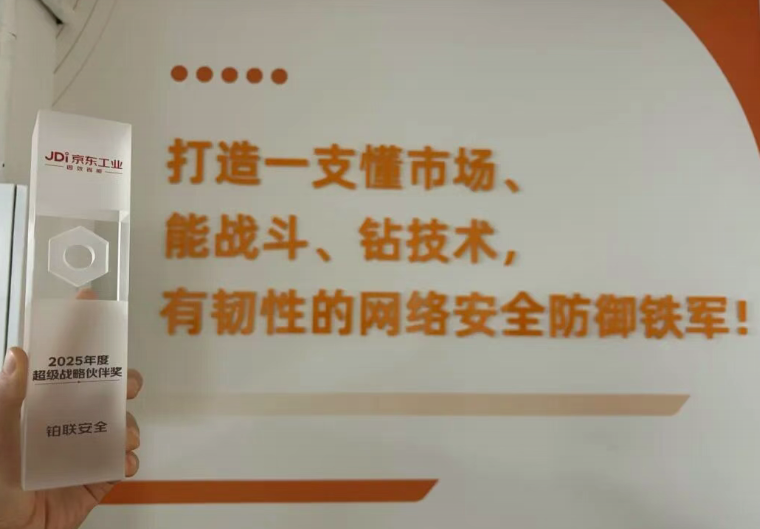 近日,北京铂联安全技术有限公司凭借在网络安全领域的硬核技术实力、成熟的产品服务体系以及与京东工业的深度合作成果,荣膺 《京东工业 2025 年度超级战略伙伴奖》!