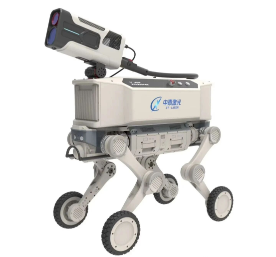 四足机器人作为灵活移动载体,携带激光销毁仪轻松穿越山地、废墟等复杂地形,直达目标物所在处置区域;双光云台相机与全景相机提前锁定目标位置、排查环境隐患,气体传感器同步监测周边安全状态,为激光销毁提供精准环境数据;自组网设备保障远程操控信号稳定,通过手持遥控终端在安全距离内启动激光销毁仪实现非接触式处置。全套设备硬件专属匹配、软件无缝协同,开箱即可投入使用,提升处置效率。