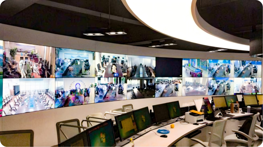 部署视频会议MCU、音视频一体化调度平台、分布式显控及音频系统,实现全域资源统一管控,支持56路多域跨网接入、10个席位远程操控。